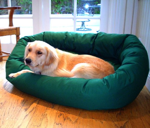 This is what your best friend would consider doggy heaven. A brand new Extra Large Super High Loft Bagel Style Pet Dog Bed (Outside Dimensions 36x52/ Inside Dimensions 30x46 ). You will not find a more luxurious pet bed, especially when your puppy finds himself surrounded by a plush bolster that?s made for leaning against for those long naps. It?s made of the finest materials available: a base of heavy duty water proof 300/600 Denier, the Bolster of a durable 7oz. Poly/cotton Twill, and stuffed with a Super Premium High Loft Polyester Fiber Fil. Fully machine washable; just place the entire bed in your washer & dryer on low heat, tumble dry low (use a commercial size laundromat for best results). Also available in Extra-Small, Small, Medium, and Large as well as a variety of colors to match your pet and décor: Black, Blue, Burgundy, Green, Khaki, and Red. For your best friend, nothing but the best. (Extra-Large recommended for dogs from 70 to 110lbs)